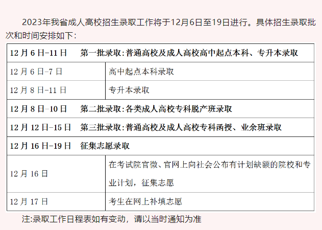 今年广东成人高考录取结果这几天会公布出来了,以下是今年成考录取时间表: