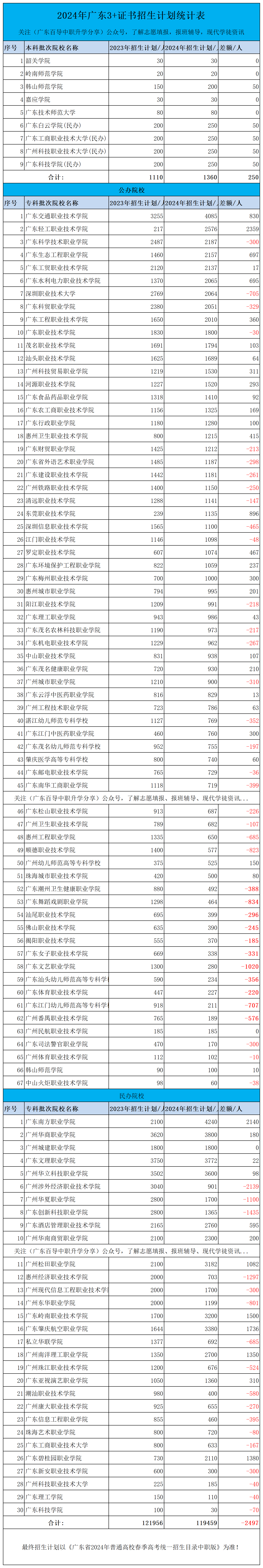 公办专科:2024年公办专科总计划为68826人,比去年减少2807人。