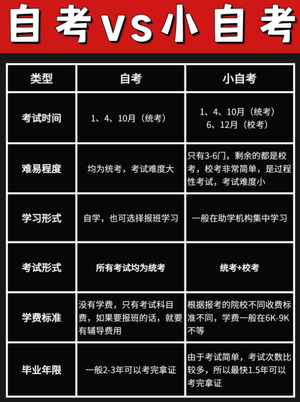 大自考主要是考生自学,也可选择报班学习。小自考一般要在助学机构集中学习。